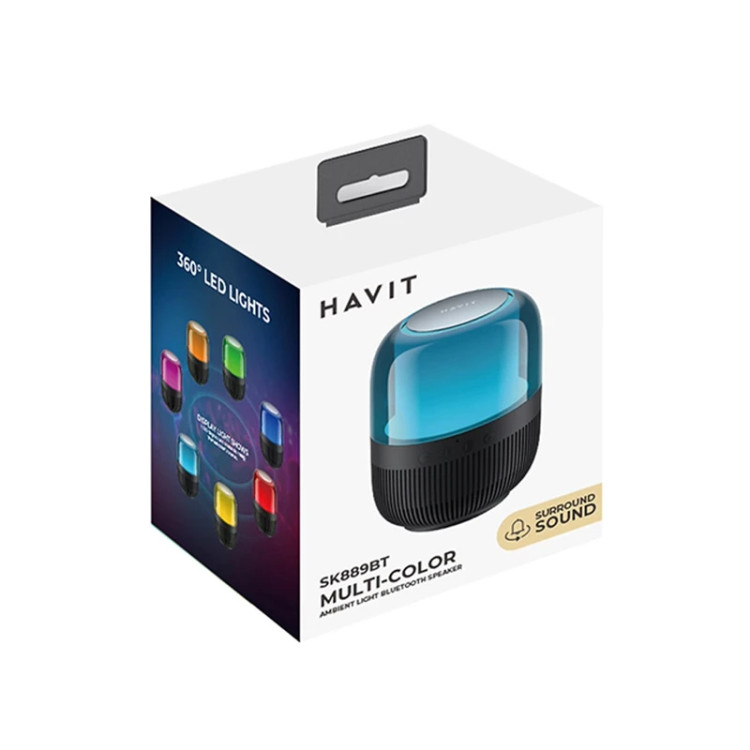 در دنیای امروزی، که زندگی همگان با فناوریهای نوین گره خورده است، داشتن وسایل همراهی که بتوانند با سبک زندگی ما هماهنگی داشته باشند، اهمیت بسزایی پیدا کرده است. در این میان، اسپیکرهای بلوتوثی قابل حمل جایگاه ویژهای به خود اختصاص دادهاند. یکی از برند های معتبری که که به تولید اسپیکر و توزیع آن به سراسر دنیا میپردازد، برند Havit است. نتیجه یک طراحی سه بعدی زیبا در کنار نورپردازی چراغ های LED، مدل SK889BT است. در نتیجه این طراحی، صدای اسپیکر به صورت 360 در محیط اطراف پخش میشود و تمام افراد حاضر در جمع صرف نظر از اینکه اسپیکر کجا قرار گرفته باشد، بالاترین کیفیت ممکن را خواهند شنید. در روی بدنه دکمه Bass Boost نیز تعبیه شده و با فشردن آن میتوانید بیس قوی تری در هنگاه پخش ایجاد کنید. کیفیت صدای مطلوب این اسپیکر را یک بلندگوی 57 میلی متری تولید میکنند. همچنین این اسپیکر از فناوری TWS بهره میبرد و میتوانید به صورت دوکاناله از این اسپیکر استفاده کنید. استفاده از بلوتوث ورژن 5.3 باعث اتصال سریع به دستگاه شده و همچنین کمترین تاخیر صدا را در پخش خواهد داشت. برد 10 متری بلوتوث نیز خیال شما را بابت اتصال به اسپیکر در محیط خانه و میهمانی راحت میکند. به جز اتصال بلوتوث، از کارت حافظه نیز جهت پخش موسیقی یا پادکست و هر فایل صوتی دیگری میتوانید استفاده کنید. باتری این اسپیکر 1500 وات است و با یک بار شارژ کردن تا 6 ساعت میتوانید از آن استفاده کنید. مدت زمان شارژ شدن این اسپیکر 10 واتی، 4 ساعت میباشد و با کابل تایپ سی شارژ میشود.