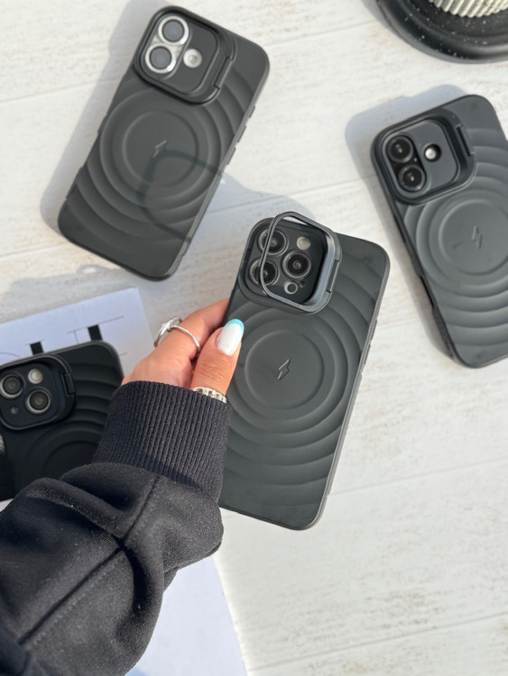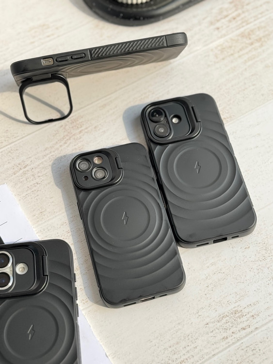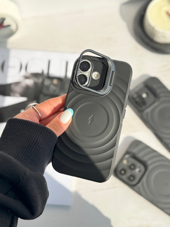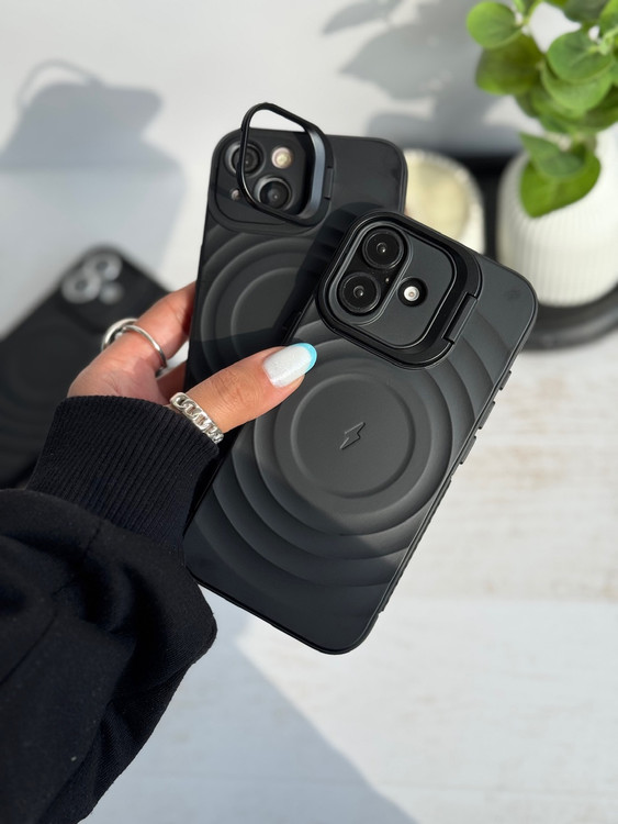 قاب آیفون مشکی با مگ سیف ، محافظ لنز و استند شو | محافظت هوشمند، طراحی کاربردی.