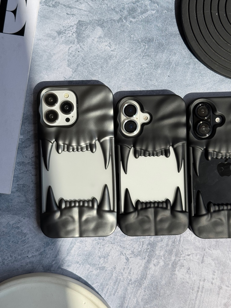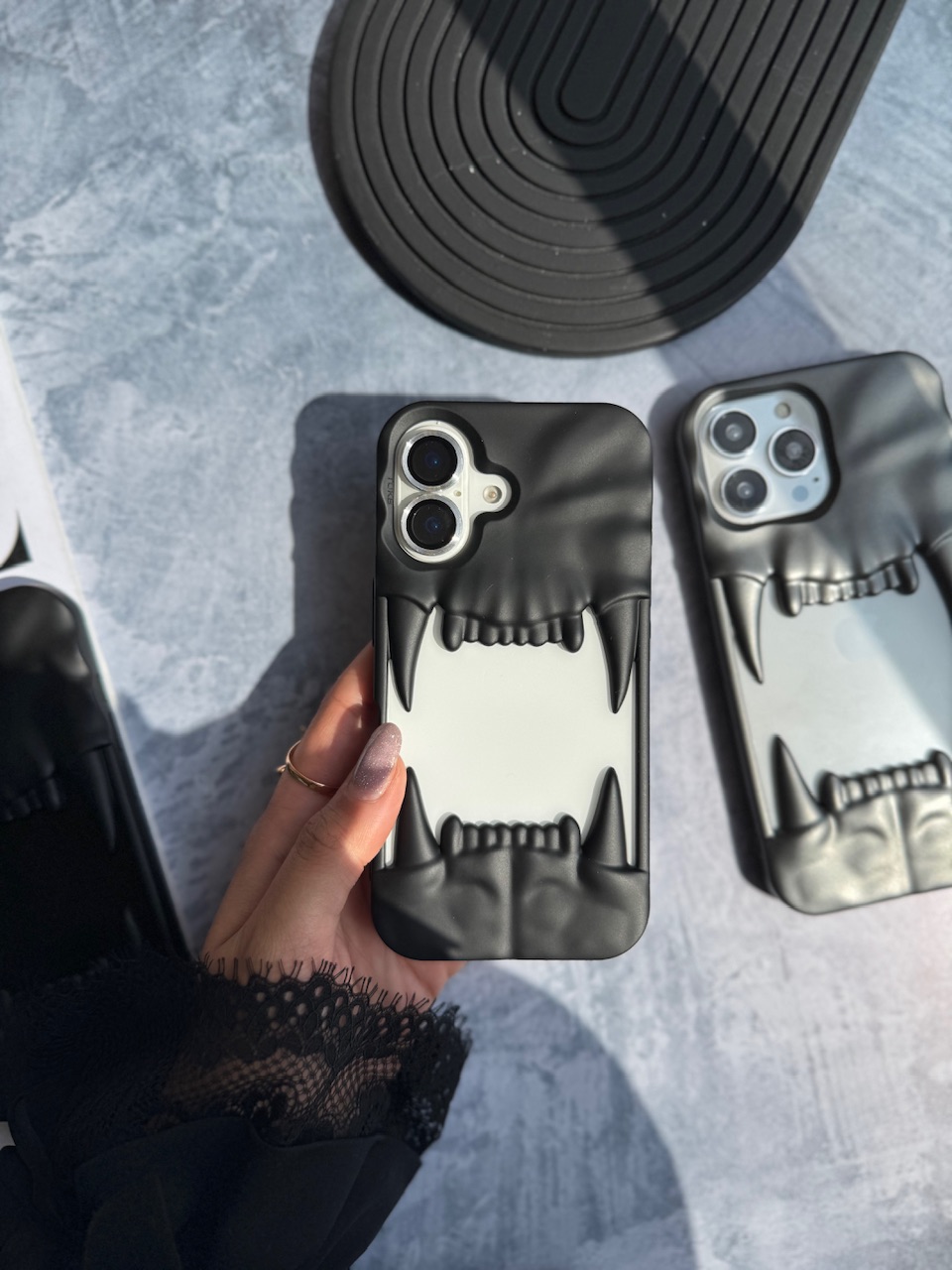 قاب فانتزی دندان ببر رنگ مشکی و تیتانیوم سری آیفون 16