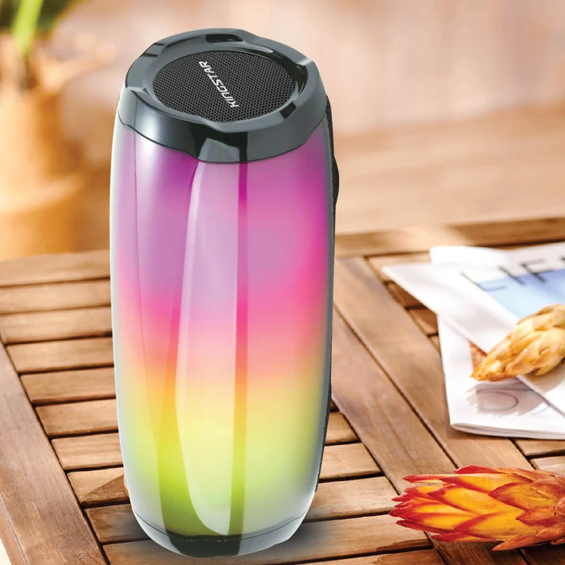 اسپیکر بلوتوثی مدل KBS145 از محصولات جدید کمپانی کینگ استار است. این محصول با ارائه صدایی دلنشین، تجربهی لذت بخشی از شنیدن موسیقی را برای شما به ارمغان میآورد. از جمله از ویژگیهای بصری اسپیکر بلوتوثی مدل KBS145 میتوان به ابعاد مناسب آن که 210*80*80 میلیمتر و وزن 431 گرمی و بیش از 10 نوع تنوع نور RGB اشاره کرد. این ابعاد به همراه دکمههای تغییر موسیقی، حالت موسیقی و تغییر نوع RGB که در روی اسپیکر تعبیه شده، موجب شده تا این محصول تبدیل به یک کالای قابل حمل و جذاب برای رفاه کاربران شود. یکی از مواردی که میشود بعنوان نکته اول در رابطه با محصول KBS145 به آن اشاره کرد در خصوص بلوتوث نسخه 5.3 و محدوده عملکرد 10متر بکار رفته در آن است که موجب استفاده از این تکنولوژی در فضای باز شده است. نکته دوم در رابطه با وضوح صدای پویا و شفاف آن در بخش جلویی اسپیکر هنگام پخش موسیقی است که توجه هرکاربری را به خود جلب میکند. این محصول علاوه بر امکان مکالمه قابلیت پشتیبانی از فلش مموری، کارت حافظه با فرمت FAT 32 و جک 3.5 میلی متری را نیز داراست. علاوه بر موارد گفته شده باید به نکات فنی و تخصصی آن بیشتر توجه داشت. این اسپیکر با 2 درایور 52 میلیمتری، دارای توان خروجی 6 وات است. منبع انرژی این کالا باتری لیتیوم پلیمر داخلی آن با نرخ 3.7 ولت 1200 میلی آمپری است. همچنین میزان حداکثر ورودی و خروجی آن 5V/0.5A است. این محصول با قابلیت پخش موسیقی به اندازه 3 ساعت با میزان صدای 50٪ دارای پاسخ فرکانس 120 هرتز تا 20کیلوهرتز است و در طی زمان 3 ساعت به طور کامل شارژ می شود.فناوری True Wireless Stereo یا به اختصار TWS یک راه ارتباطی بر پایه فناوری بلوتوث است که امکان برقراری اتصال بدون سیم را فراهم کرده است و از آن طریق میتوان صدایی Stereo با دو کانال صوتی چپ و راست را پخش کرد. به کمک این فناوری نیازی به اتصال سیمی بین کانالهای چپ و راست پخش کننده صوت (مانند ایربادز و اسپیکر) نیست و میتوان آنها را از طریق بلوتوث به یکدیگر متصل نمود. برای فعال سازی قابلیت TWS به دفترچه راهنما همراه اسپیکر مراجعه شود
