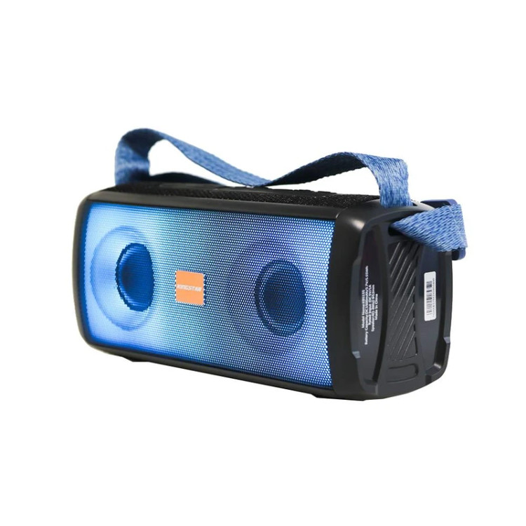 اسپیکر بلوتوثی قابل حمل مدل KBS155 از محصولات جدید کمپانی کینگ استار است. از جمله ویژگیهای بصری این اسپیکر میتوان به بدنه پلاستیکی به ابعاد 90*80*207 میلیمتر و وزن 707 گرمی در کنار نوپردازی RGB آن اشاره کرد. این ابعاد در کنار بند موجود در بالای اسپیکر موجب شده تا این محصول تبدیل به یک کالای قابل حمل و جذاب شود. در قسمت بالایی این اسپیکر 5 دکمه بزرگ تعبیه شده که شامل دکمه خاموش و روشن، کاهش و افزایش صدا، تغییر مود و تغییر نورپردازی است. جهت اطلاع از عملکرد دکمه ها به دفترچه راهنما رجوع کنید. همچنین در کنار دکمه ها، با کنار زدن پوشش لاستیکی، درگاه Type-C جهت شارژ اسپیکر و ورودی های کارت حافظه MicroSD (با فرمت FAT32)، درگاه USB (با فرمت FAT32) و جک 3.5 میلی متری را مشاهده خواهید نمود. KBS155 دارای 10 مدل نورپردازی متفاوت و جذاب نیز میباشد که در قسمت جلویی اسپیکر قابل مشاهده است. در تشریح ویژگی های داخلی محصول، میتوان به وجود 2 بلند گوی 4 واتی (در مجموع 8 وات توان خروجی) با قطر 52 میلی متر و مقاومت 4 اهمی اشاره کرد. همچنین بلوتوث نسخه 5.3 با محدوده عملکرد 10 متر، امکان استفاده از این تکنولوژی در فضای باز را به ما میدهد. وضوح صدای پویا و شفاف در بخش جلویی اسپیکر هنگام پخش موسیقی، توجه هر کاربری را به خود جلب میکند. وجود میکروفون و قابلیت مکالمه از طریق اسپیکر از دیگر ویژگی های این محصول میباشد. مدت زمان پخش اسپیکر با صدای 50 درصد بیش از 4 ساعت بوده و مدت زمان مورد نیاز جهت شارژ اسپیکر از صفر تا صد حدود 2 ساعت میباشد. منبع انرژی این کالا باتری لیتیومی 3.7 ولت 1500 میلی آمپری است. فناوری True Wireless Stereo یا به اختصار TWS یک راه ارتباطی بر پایه فناوری بلوتوث است که امکان برقراری اتصال بدون سیم را فراهم کرده است و از آن طریق میتوان صدایی Stereo با دو کانال صوتی چپ و راست را پخش کرد. این قابلیت در اسپیکر KBS155 موجب پرطرفدار شدن آن شده است. جهت فعال سازی قابلیت TWS به دفترچه راهنما همراه محصول مراجعه شود. در نگاه تخصصی تر، این اسپیکر با نسبت سیگنال به نویز 90 دسی بل و پاسخ فرکانسی 120Hz-20KHz از اسپیکر های با کیفیت بازار به شمار میآید. همچنین میزان حداکثر ورودی شارژ آن 5V/1A است که باعث کوتاه تر شدن مدت زمان مورد نیاز جهت شارژ اسپیکر میشود.