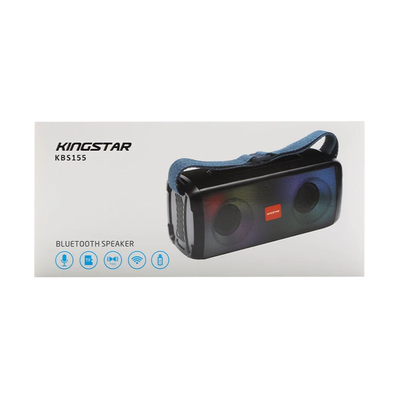 اسپیکر بلوتوثی قابل حمل مدل KBS155 از محصولات جدید کمپانی کینگ استار است. از جمله ویژگیهای بصری این اسپیکر میتوان به بدنه پلاستیکی به ابعاد 90*80*207 میلیمتر و وزن 707 گرمی در کنار نوپردازی RGB آن اشاره کرد. این ابعاد در کنار بند موجود در بالای اسپیکر موجب شده تا این محصول تبدیل به یک کالای قابل حمل و جذاب شود. در قسمت بالایی این اسپیکر 5 دکمه بزرگ تعبیه شده که شامل دکمه خاموش و روشن، کاهش و افزایش صدا، تغییر مود و تغییر نورپردازی است. جهت اطلاع از عملکرد دکمه ها به دفترچه راهنما رجوع کنید. همچنین در کنار دکمه ها، با کنار زدن پوشش لاستیکی، درگاه Type-C جهت شارژ اسپیکر و ورودی های کارت حافظه MicroSD (با فرمت FAT32)، درگاه USB (با فرمت FAT32) و جک 3.5 میلی متری را مشاهده خواهید نمود. KBS155 دارای 10 مدل نورپردازی متفاوت و جذاب نیز میباشد که در قسمت جلویی اسپیکر قابل مشاهده است. در تشریح ویژگی های داخلی محصول، میتوان به وجود 2 بلند گوی 4 واتی (در مجموع 8 وات توان خروجی) با قطر 52 میلی متر و مقاومت 4 اهمی اشاره کرد. همچنین بلوتوث نسخه 5.3 با محدوده عملکرد 10 متر، امکان استفاده از این تکنولوژی در فضای باز را به ما میدهد. وضوح صدای پویا و شفاف در بخش جلویی اسپیکر هنگام پخش موسیقی، توجه هر کاربری را به خود جلب میکند. وجود میکروفون و قابلیت مکالمه از طریق اسپیکر از دیگر ویژگی های این محصول میباشد. مدت زمان پخش اسپیکر با صدای 50 درصد بیش از 4 ساعت بوده و مدت زمان مورد نیاز جهت شارژ اسپیکر از صفر تا صد حدود 2 ساعت میباشد. منبع انرژی این کالا باتری لیتیومی 3.7 ولت 1500 میلی آمپری است. فناوری True Wireless Stereo یا به اختصار TWS یک راه ارتباطی بر پایه فناوری بلوتوث است که امکان برقراری اتصال بدون سیم را فراهم کرده است و از آن طریق میتوان صدایی Stereo با دو کانال صوتی چپ و راست را پخش کرد. این قابلیت در اسپیکر KBS155 موجب پرطرفدار شدن آن شده است. جهت فعال سازی قابلیت TWS به دفترچه راهنما همراه محصول مراجعه شود. در نگاه تخصصی تر، این اسپیکر با نسبت سیگنال به نویز 90 دسی بل و پاسخ فرکانسی 120Hz-20KHz از اسپیکر های با کیفیت بازار به شمار میآید. همچنین میزان حداکثر ورودی شارژ آن 5V/1A است که باعث کوتاه تر شدن مدت زمان مورد نیاز جهت شارژ اسپیکر میشود.