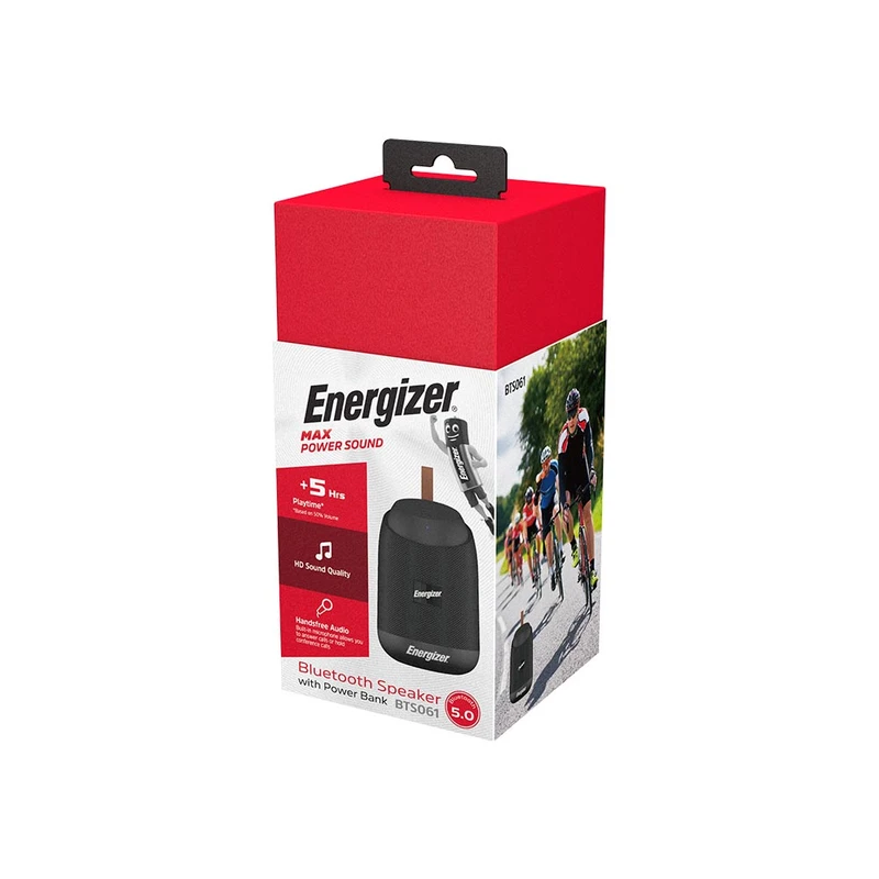 اسپیکر بلوتوثی BTS061 انرجایزر از رادیو FM پشتیبانی میکند. شما با کمک کلیدهای موجود روی اسپیکر میتوانید به جستجوی کانالهای موردنظر خود بپردازید. همچنین این اسپیکر علاوه بر بلوتوث و رادیو از فلش مموری و کارت میکرو نیز پشتیبانی میکند. به کمک دکمه M بر روی اسپیکر میتوانید مود اسپیکر را تغیر دهید. دکمه وسط دکمه خاموش و روشن اسپیکر بلوتوث انرجایزر است و برای کانال یابی و جستجوی موسیقی میتوانید با نگهداشتن چندثانیهای دکمههای زیاد و کم کردن صدای اسپیکر این عمل را انجام دهید. هنگام اتصال با بلوتوث لازم نیست که پلیر یا گوشی خود را در کنار آن قرار دهید. این محصول برد عملیاتی ده متر را پشتیبانی میکند. همینطور این محصول از میکروفون داخلی برخوردار است و قابلیت مکالمه را در هنگام اتصال تماس داراست. توان خروجی این اسپیکر 6 وات است که با توجه به اندازه این اسپیکر از توان خروجی بسیار خوبی برخوردار است. ظرفیت باتری این محصول 1200میلی آمپرساعت است و شما میتوانید حدود 2 ساعت مداوم با آن به موسیقی موردعلاقه خود گوش فرا دهید.