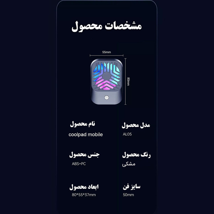 فن خنک کننده رادیاتوری گوشی موبایل مدل AL-5 از سازگاری بسیار بالایی با انواع گوشی های هوشمند تلفن همراه شامل گوشی های اندرویدی و iOS برخوردار است. قدرت خنک کنندگی در این فن رادیاتوری فقط وابسته به فن آن نبوده و برای خنک کردن گوشی از جدیدتری تکنولوژی استفاده می شود که از که به تنهایی از توان بالایی برخوردار است. علاوه بر این قسمت چند لایه آلیاژ آلومینیوم در این فن رادیاتوری موجود می باشد که بر قدرت این محصول تا حد زیادی افزوده است. این محصول دارای 3 حالت سرعت می باشد و با سرعت چرخش مناسب هوای گرم را در سریع ترین زمان از گوشی می گیرد. در قسمت فن این محصول از نور پردازی با نور های RGB استفاده شده که در هنگام بازی هیجان بسیار زیادی ایجاد می کند. فن خنک کننده رادیاتوری گوشی موبایل مدل AL-5 با داشتن گیره به سادگی و سرعت خیلی بالا بر روی هر نوع گوشی هوشمند نصب می شود. این محصول دارای باتری می باشد و با شارژ کردن آن ساعت ها امکان بازی به صورت بی سیم را امکان پذیر می باشد.