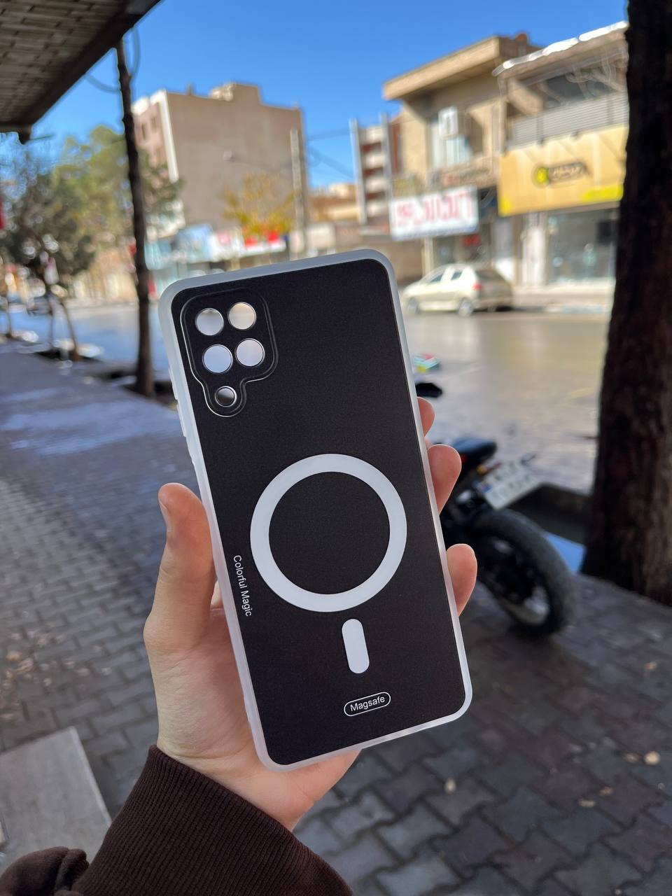 قاب Colorful Magic طرح مگ سیف محافظ لنزدار Samsung Galaxy A12 / M12 / F12 - مشکی