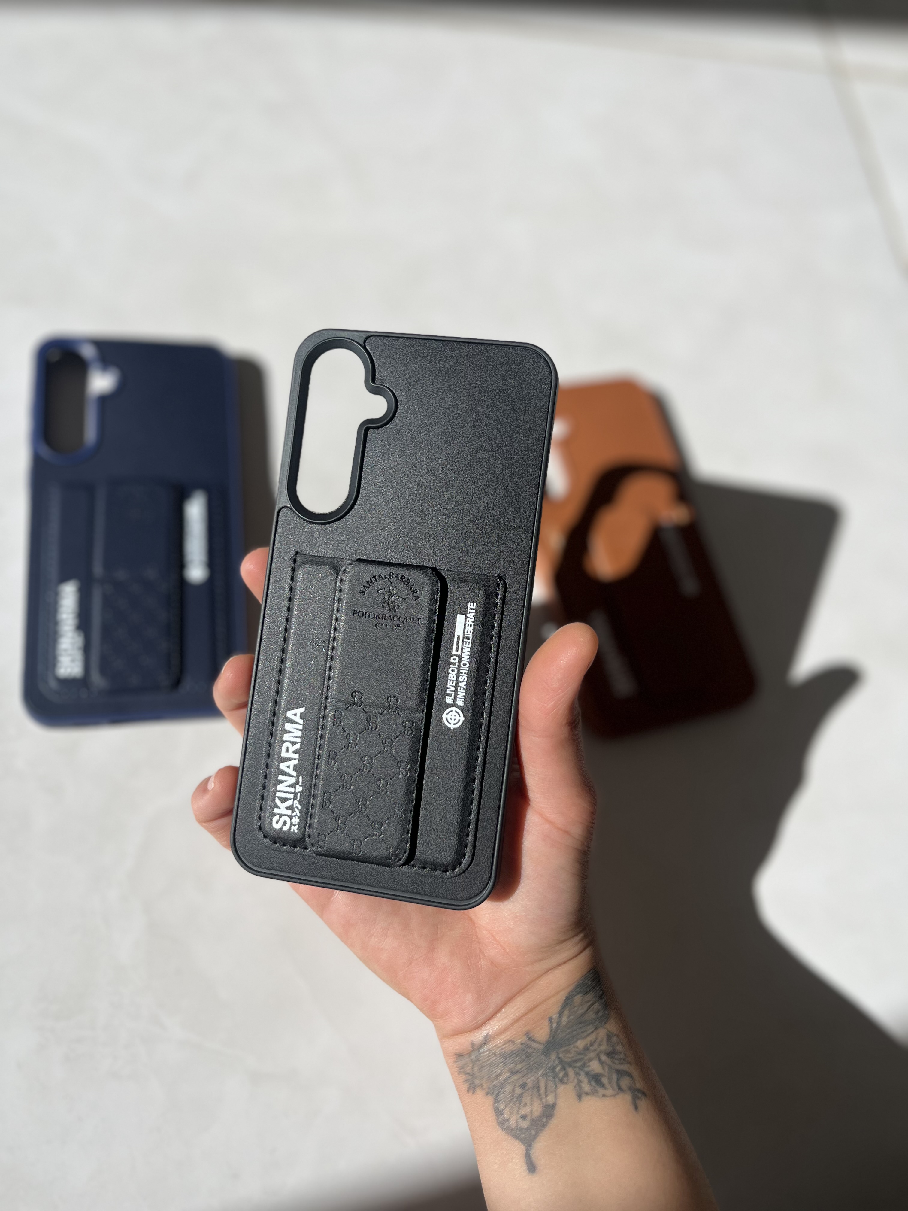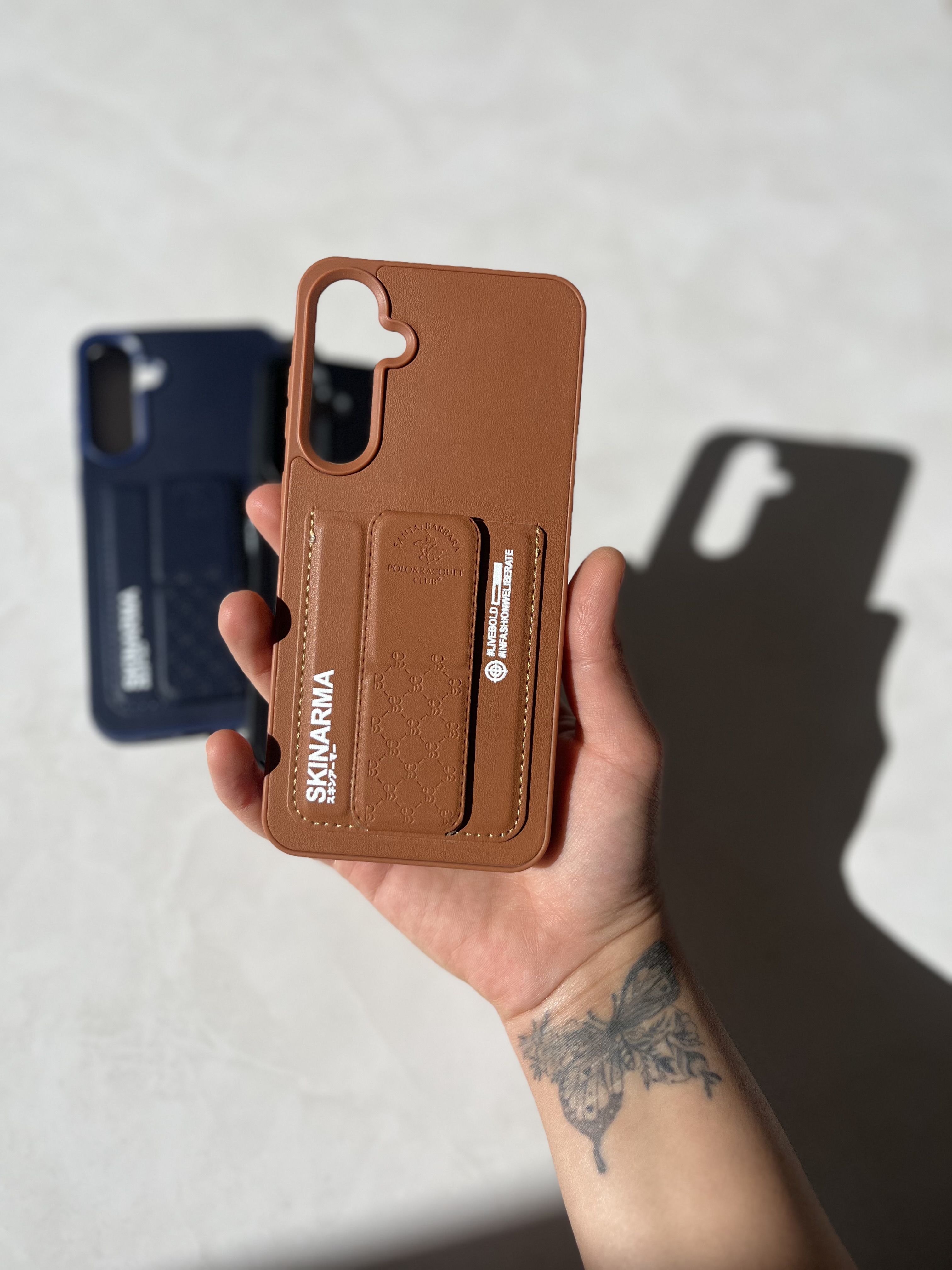 قاب چرمی ضد ضربه جاکارتی استند شو مناسب سامسونگ A55