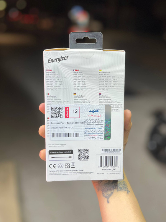 پاوربانک انرجایزر مدل UE10050C ظرفیت 10000 میلی آمپرساعت