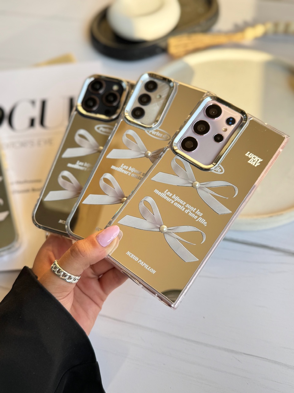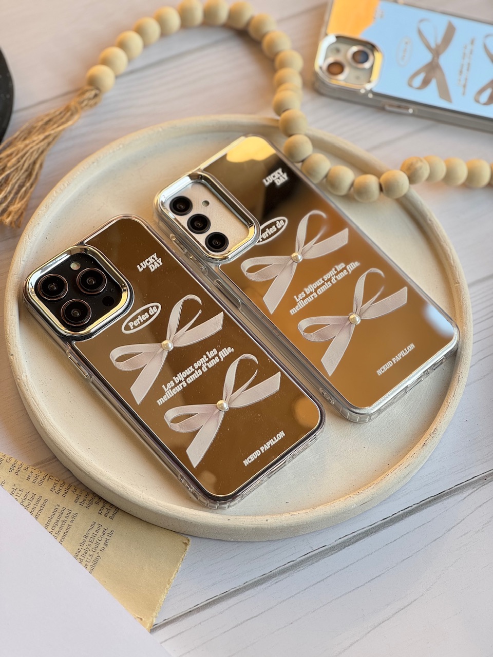 قاب فانتزی آیینه ای پاپیون مرواریدی سامسونگ و آیفون